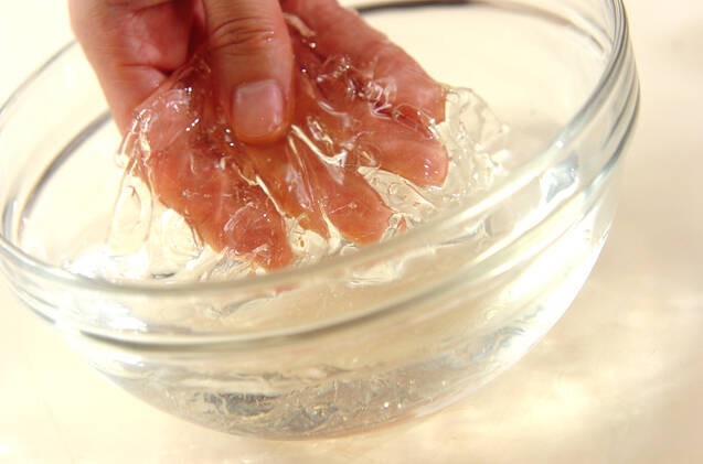 板ゼラチンはたっぷりの分量外の水につけてもどしておく。