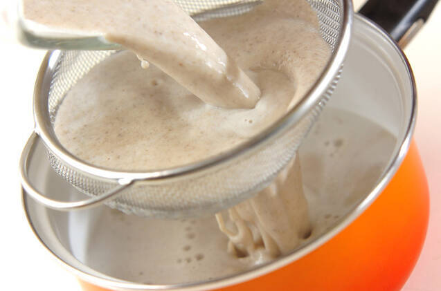 ミキサーにかけてなめらかにかくはんし、網を通して鍋に戻し、煮たつ直前に火を止める。器によそい、クルトンをのせる。