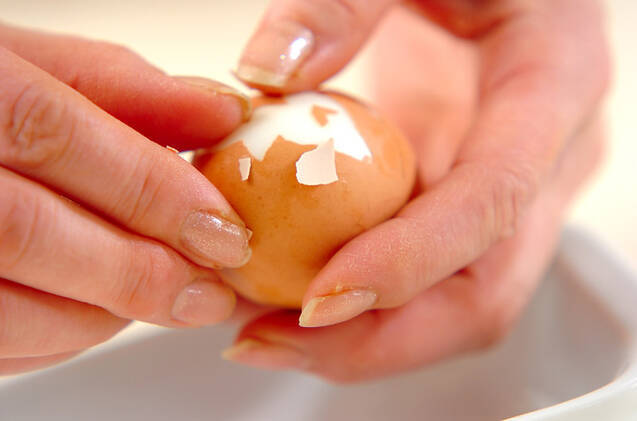 ジャガイモとカボチャは鍋に戻し、中火にかけて水分を飛ばす。卵は水に取り、アルミホイルをはずして粗熱が取れたら殻をむく。