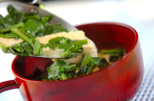 菊菜がしんなりしたら刻みネギを入れてひと混ぜし、器に注ぎ分ける。