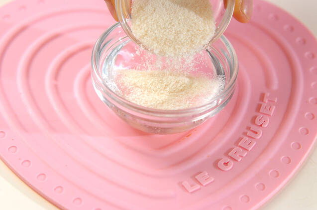 水に粉ゼラチンを振り入れ、ふやかしておく。