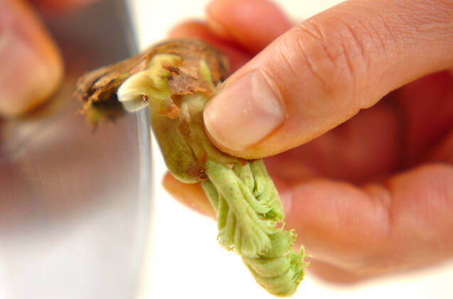 タラの芽は汚い部分を取り除き、サッと洗って水気を拭き取る。卵は溶き、しらす干しを加えて混ぜておく。