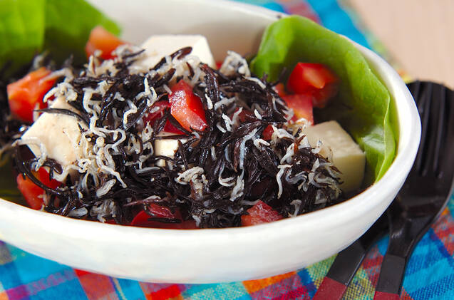 豆腐とトマト、芽ヒジキの身体に良い、ヘルシーなサラダです。