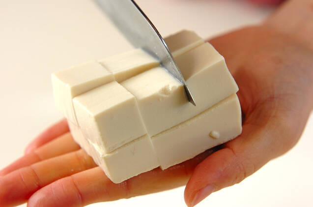 豆腐はサッと水洗いし、大きめのひとくち大に切る。