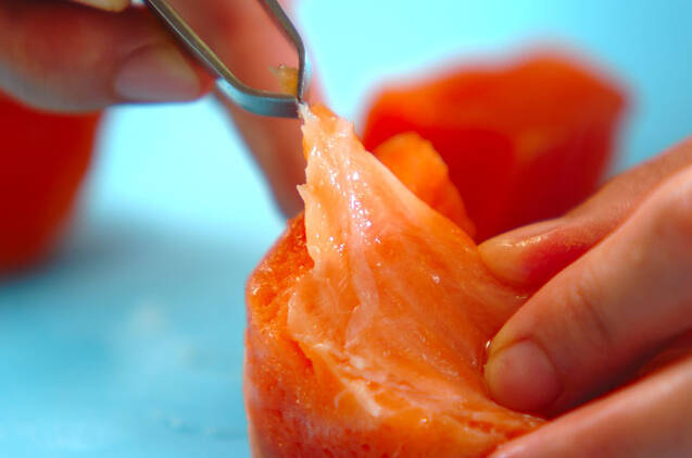 鮭はひとくち大に切って骨を取り除き、塩コショウを振る。