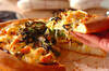 みそベースの和風ソースと、具が相性良し!ピザ生地の周りを厚めにしておく事で、生地の味もしっかり楽しめます。