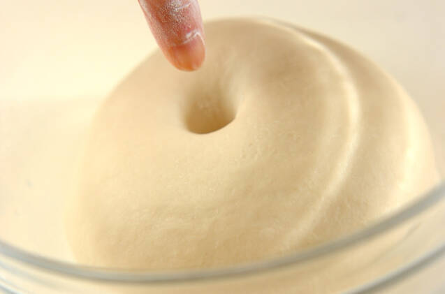指に強力粉(分量外)をつけ、パンに穴をあけ、そのままの穴が残るか確認をする(フィンガーテスト)。