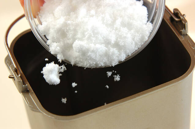 ホームベーカリーのパンケースに水きりをしたプレーンヨーグルト100gと溶き卵、砂糖を入れてケーキコースを選び、スタートを押す。