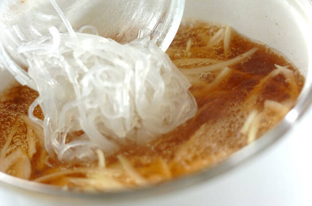 鍋に<スープ>の材料を入れ、煮たったら玉ネギと春雨を入れ2~3分煮る。