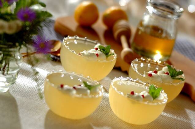 ハチミツの甘みとレモンの酸味がピッタリ。ジメジメした季節にサッパリといただけるデザートです。