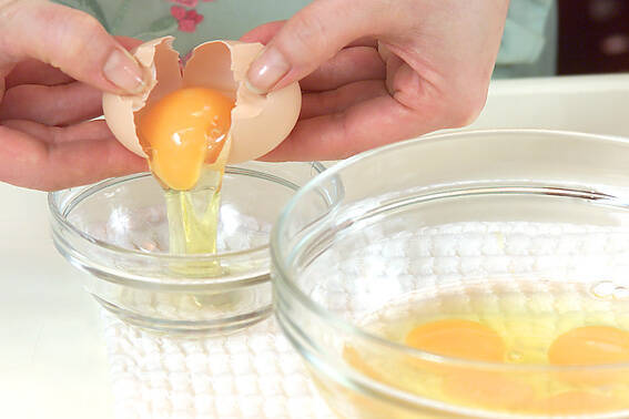 卵は1個ずつ小さい器に割りほぐし、血などが混ざっていないことを確認して大きめのボウルに入れ、溶きほぐしておく。