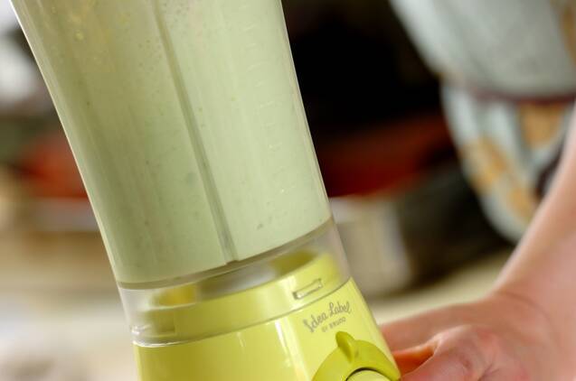 ミキサーに枝豆と豆乳を入れてかくはんし、ボウルに移す。