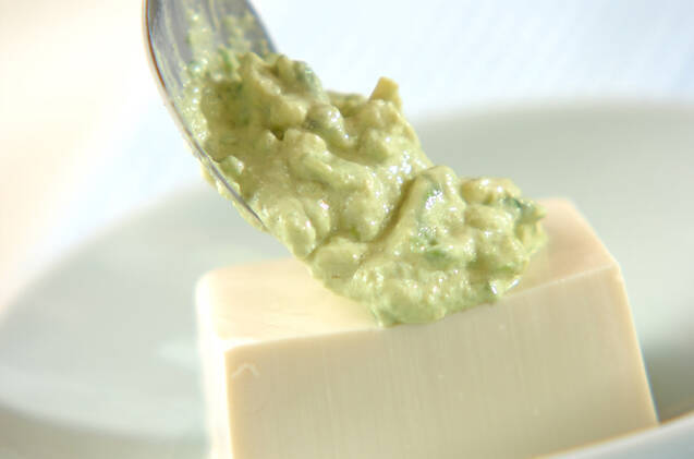 器に豆腐を盛り、(1)をかけてかつお節を振る。
