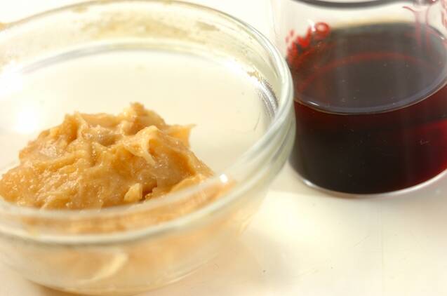 <調味料>の材料を混ぜ合わせる。ボウルで<みそマヨダレ>の材料を混ぜ合わせておく。