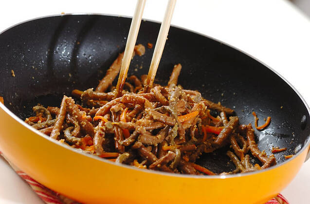 粗熱が取れたらレモン汁、すり白ゴマ、塩、コショウをからめ、器に盛る。