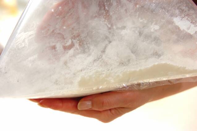 揚げ油を170℃に予熱しはじめる。鶏肉に、混ぜ合わせた<合わせ粉>をしっかりからめる。洋梨は、軸をとり縦6~8つのくし切りにして、芯をとり皮をむく。