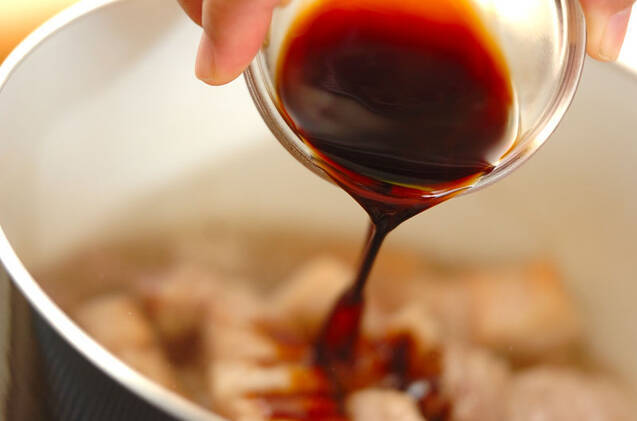 <調味料>の残りの材料を加え、落とし蓋をして30分程度弱めの中火で加熱する。