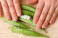 オクラは塩をもみこんで板ずりし、水洗いする。ガクを切り落として1cm幅の輪切りにする。