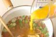 ひと煮立ちすれば、<水溶き片栗>を加えてとろみをつけ、溶き卵を加える。菜ばしで大きく円を描く様に混ぜて、卵がふんわりすれば火を止め、器に注ぐ。