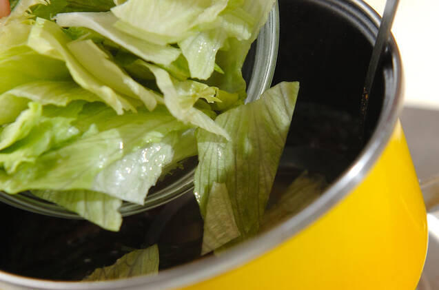 レタスを加えてひと混ぜし、器に注ぐ。