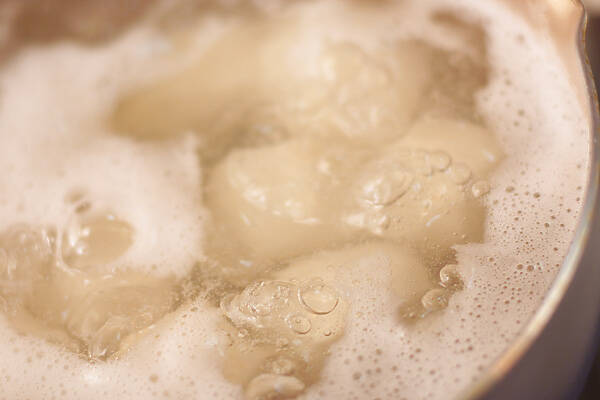 鍋に1の里芋、タップリの水を入れて強火にかけ、煮立ったら中火で5~6分下ゆでする。水に取ってぬめりを洗い流し、水気をきる。(ぬめりを洗い流しておくと、中まで味がしみ込みやすくなりますよ!)