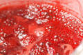 <ペクチン液>を加えてよく混ぜ合わせ、軽くフツフツ状態の弱火で更に15分煮込む。途中アクが出てきたらすくって下さい。