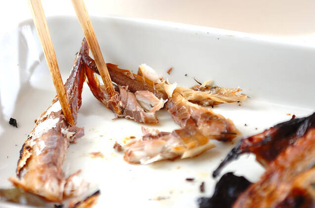 焼き網に薄くサラダ油をぬり、アジの開きの皮を下にして並べ、表面に焼き色がつくまで8〜9分焼き、皮と骨を取ってほぐす。