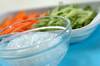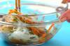 ボウルに<調味料>の材料を混ぜ、(1)と春雨、オイルサーディンを和え、器に盛る。