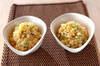 ジャガイモが熱い間に皮をむき、マッシャーでつぶし、バター、塩コショウを混ぜ合わせる。(2)と合わせ、最後にかつお節を混ぜ合わせて器に盛る。