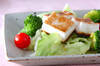 食べる直前まで冷蔵庫で冷やしておいた野菜とハンペンを盛り合わせ、<ドレッシング>を掛けていただく。