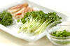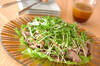 鍋にお湯を沸かし、酒を加える。その中に牛肉を1枚ずつ菜ばしではさんで泳がすようにゆで、すぐに氷水に取って冷ます。冷めたらザルに上げ、キッチンペーパーで水気を拭き取る。