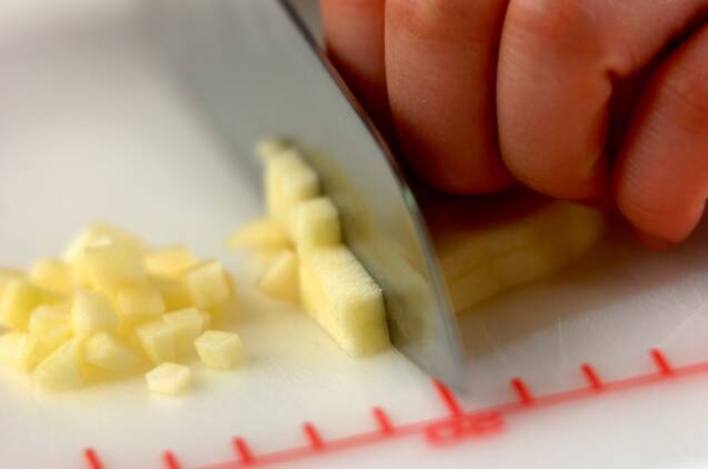 リンゴは芯を除いて皮をむき、5mm角に切る。