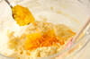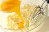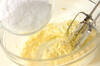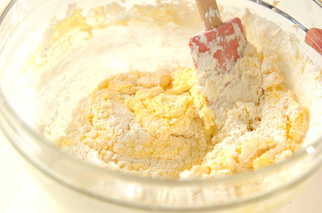 2に、合わせた粉類を2~3回に分けて加え、泡立て器からゴムベラに変えて粉気がなくなるまで混ぜ合わせる(練らないように気をつける)。