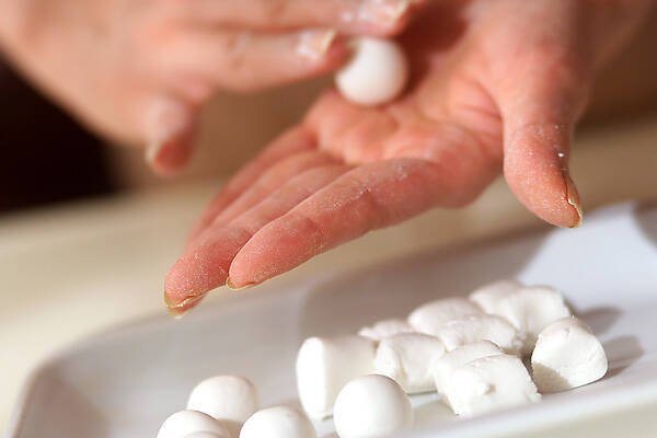 耳たぶ位の柔らかさになれば、小さめの団子に丸める。