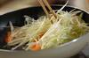 白ネギは縦半分に切り、さらに斜め薄切りにする。