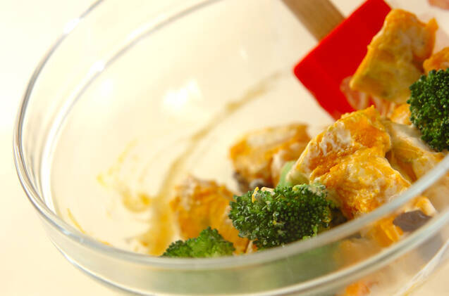 耐熱皿に水でぬらしたブロッコリーを並べ、ラップをかけて電子レンジで1分30秒~2分加熱し、色が鮮やかになったら(1)に加えて混ぜ合わせ、レーズンも混ぜ合わせる。器に盛り、スライスアーモンドを散らす。