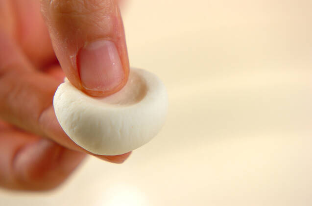 <白玉団子>を作る。白玉粉に水を少しずつ加えながら、耳たぶ位の固さになるまで練る。小さく丸めて中央を少し凹ませ、湯を沸かした鍋に入れ、浮いてきたら30秒ほどゆでて水に放ち、粗熱を取る。