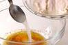 鶏ささ身は厚みを半分に切って筋を引き、耐熱容器に入れて酒を振り掛ける。ふんわりとラップを掛け、電子レンジで1分30秒~2分加熱する。粗熱が取れたら食べやすい大きさに裂き、蒸し汁は取っておく。