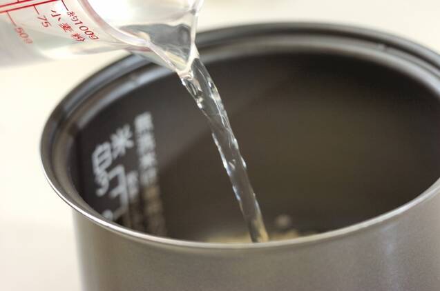 炊飯器にお米、<合わせだし>の材料を入れ、ひと混ぜして炊く。