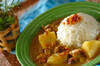器に盛る。ご飯も器に盛りフライドオニオンを散らす。