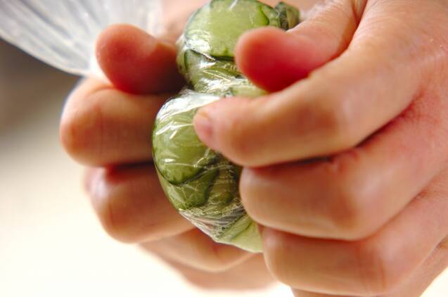 キュウリは薄い輪切りにし、分量外の塩少々でもみ、しんなりしたら水洗いして水気を絞る。