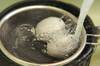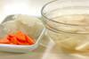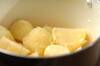 鍋にジャガイモ、ニンジン、たっぷりの水を加えて火にかける。煮たったら火を少し弱めて7~8分ゆでる。ジャガイモが柔らかく(竹串がス~ッと通るくらいに)なるまでゆでる。
