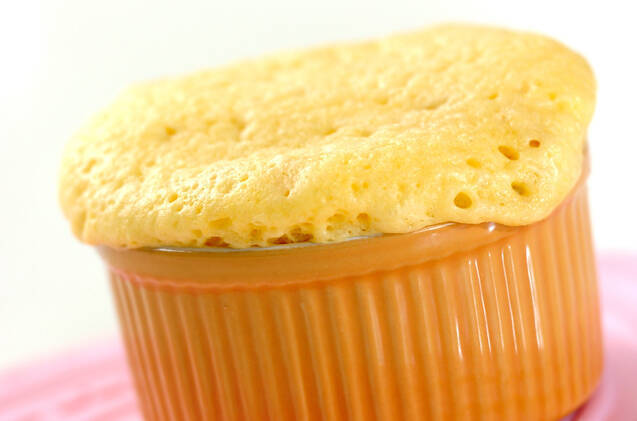 耐熱容器に(1)を6~7分目まで流し入れ、電子レンジで約3分ふくらむまで加熱する。電子レンジは600Wを使用しています。
