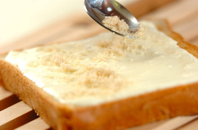 クリームチーズは、電子レンジで軽く温めて柔らかくし、牛乳を加えてよく混ぜ合わせる。(1)の食パンにぬり広げ、三温糖を振ってイチゴを並べる。食べやすい大きさに切る。