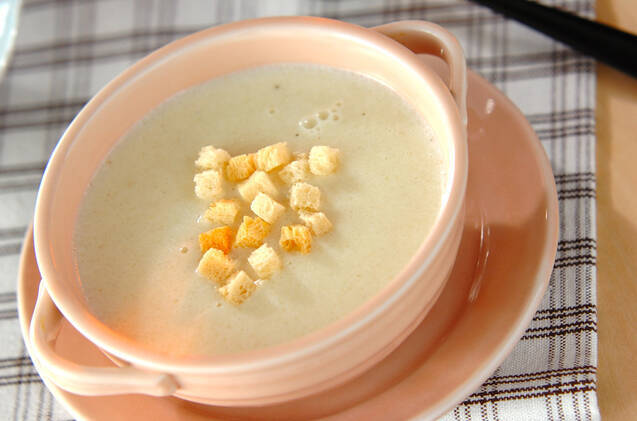 せん切りにした、たっぷりのキャベツをポタージュに。濃厚で、パンとも相性抜群です。