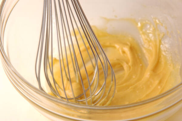 <レンジクリーム>を作る。耐熱ボウルに卵黄、和三盆を加え、泡立て器で白っぽくふんわりとなるまでよく混ぜ合わせる。牛乳180ml、コーンスターチを加えて更にしっかり混ぜ合わせる。ラップを掛けずに電子レンジで4分30秒~5分加熱し、しっかり混ぜ合わせて全体になめらかにする。クリームが熱い間にバターを加えて混ぜる。バットに移して平らにし、表面にぴったりとラップを貼りつける。粗熱が取れたら冷蔵庫で冷やす。よく練り混ぜ、半量に抹茶粉を混ぜ合わせる。