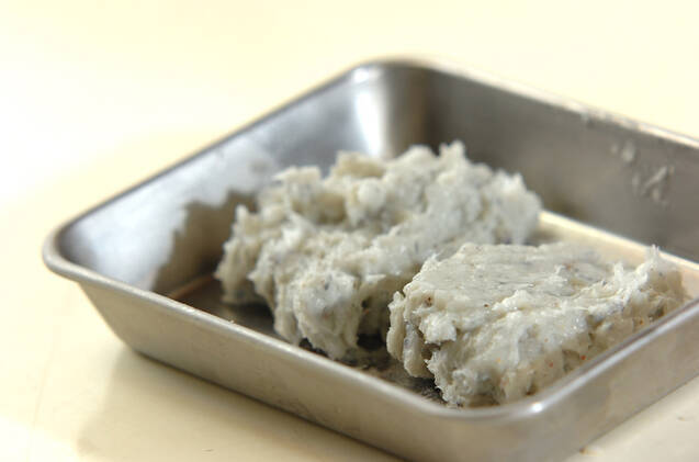 エビは殻をむいて塩を入れた水で洗い、キッチンペーパーなどで水気を拭き取る。背開きにして背ワタを取り、<調味料>の材料と共にフードプロセッサーにかけ、バットに移して冷凍庫で7~8分休ませる。
