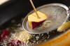 鍋に<みつ>の材料を入れて中火にかける。トロリとして黄金色になったら、(2)を入れてからめる。