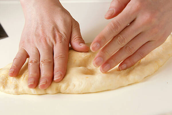 生地を押さえてガス抜きする。8等分に分割する。
