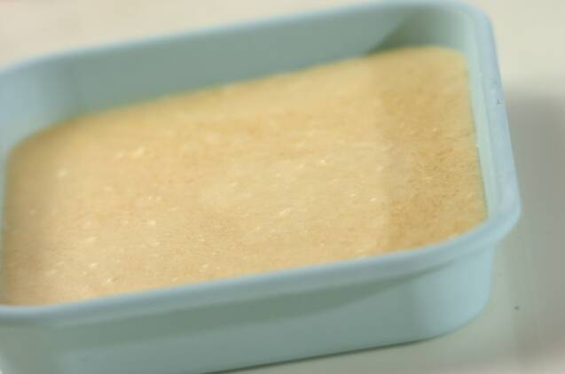 (2)をバットなどに流し入れ、冷凍庫で約5時間冷やしかためる。